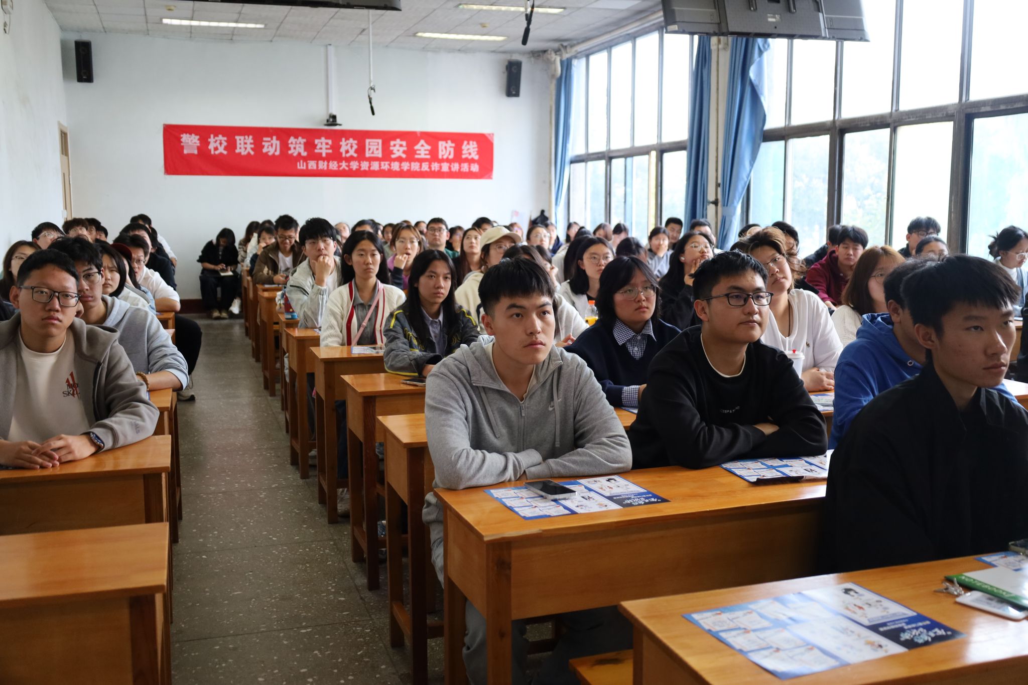 2025年10月14日下午,山西财经大学资源环境学院顺利举办“警惕电信网络诈骗,守护校园财产安全”反诈宣传教育专题讲座。本次活动特邀太原市小店区反诈中心高宏伟警官担任主讲,2025级全体新生参加。此次活动是学院深化平安校园建设的重要举措,旨在全面提升新生防范电信网络诈骗的警觉意识与应对能力,切实保障学生财产安全,维护校园和谐稳定。