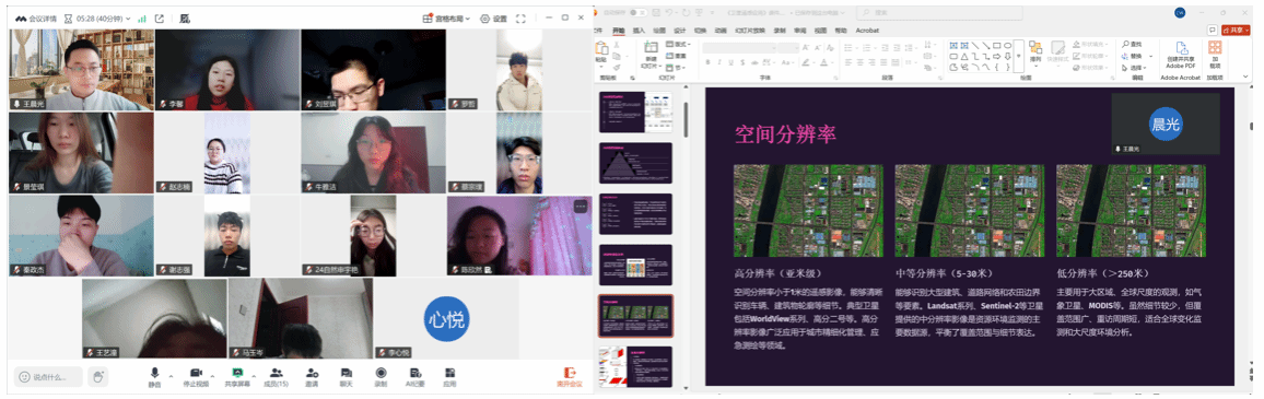 本次小学期实践活动是我院推动遥感、GIS与人工智能技术交叉融合的生动实践。讲座过程中,学生们踊跃参与,积极提问,针对数据处理和算法应用等方面的问题与老师进行了深入交流。老师耐心解答了学生们的疑问,课堂氛围热烈而互动频繁。未来,资源环境学院将继续推动遥感、GIS与人工智能等技术的交叉融合,搭建更多面向学生的科研训练平台,助力培养具备时空大数据分析能力的高素质复合型人才。