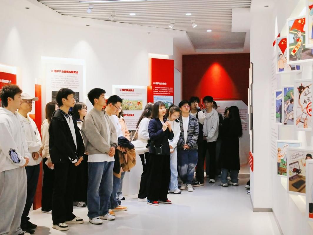 山西省总体国家安全观教育基地于2023年7月1日建成开放,展陈面积约126平方米。展厅以国家安全为主线,通过丰富翔实的图文资料、直观生动的实物展陈及典型案例解析,系统呈现了政治安全、经济安全、文化安全、生态安全、资源安全等多个领域的重要内容,为师生们搭建了一个沉浸式、全方位的国家安全学习平台。在讲解员的细致引导下,师生们认真聆听讲解、驻足凝视展物、详细记录要点,围绕各领域国家安全,特别是生态安全、资源安全相关内容展开深入交流与思考,现场学习氛围浓厚。